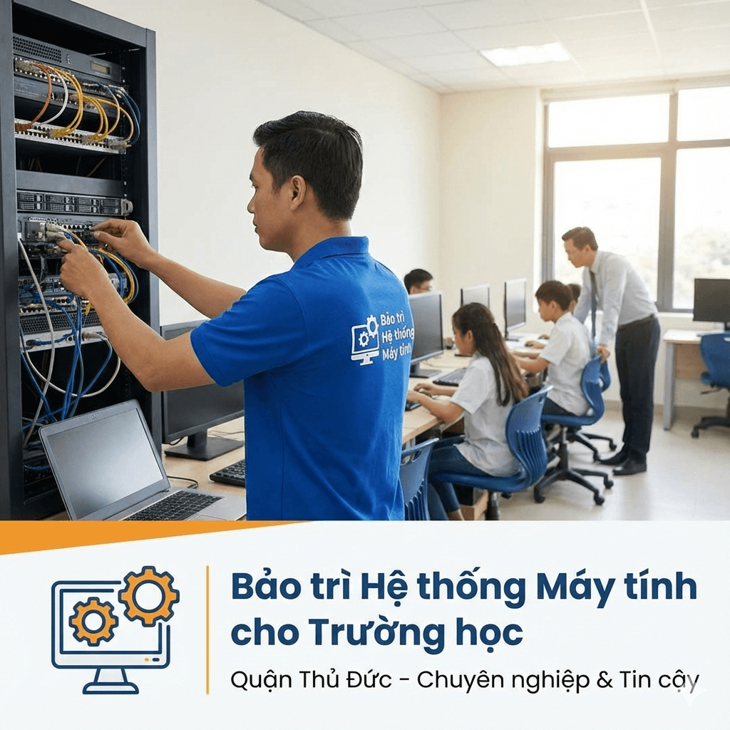 Trong kỷ nguyên số hóa, máy tính đã trở thành công cụ không thể thiếu trong mọi hoạt động giáo dục, từ việc soạn giáo án điện tử, trình chiếu bài giảng, quản lý học sinh cho đến những buổi thực hành tin học tại phòng lab. Đặc biệt tại các trường học trên địa bàn Quận Thủ Đức, nơi sự phát triển về công nghệ đang diễn ra mạnh mẽ, việc duy trì một hệ thống máy tính ổn định, hiệu quả là yếu tố then chốt để đảm bảo chất lượng dạy và học không bị gián đoạn. Tuy nhiên, đằng sau sự tiện lợi ấy, lại là nỗi lo thường trực về những sự cố kỹ thuật: máy tính “treo” giữa giờ học, máy chiếu không nhận tín hiệu, hay cả hệ thống mạng bỗng dưng “chập chờn” không lý do. Những vấn đề này không chỉ gây lãng phí thời gian quý báu mà còn ảnh hưởng trực tiếp đến trải nghiệm học tập của học sinh và hiệu suất làm việc của giáo viên.