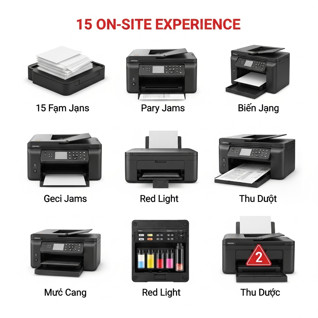 Bạn đang đau đầu vì chiếc máy in bỗng dưng "đình công" ngay giữa lúc cần in gấp tài liệu quan trọng? Kẹt giấy liên tục, bản in mờ nhạt khó đọc, hay tệ hơn là đèn báo lỗi đỏ chót không rõ nguyên nhân? Đừng lo lắng! Với 15 năm kinh nghiệm thực chiến trong lĩnh vực sửa chữa, nạp mực và bảo trì máy in tại TP.HCM, tôi – Chuyên Gia Kỹ Thuật Máy In Vi Tính Tâm Thuận Phát – sẽ giúp bạn giải quyết triệt để mọi vấn đề.