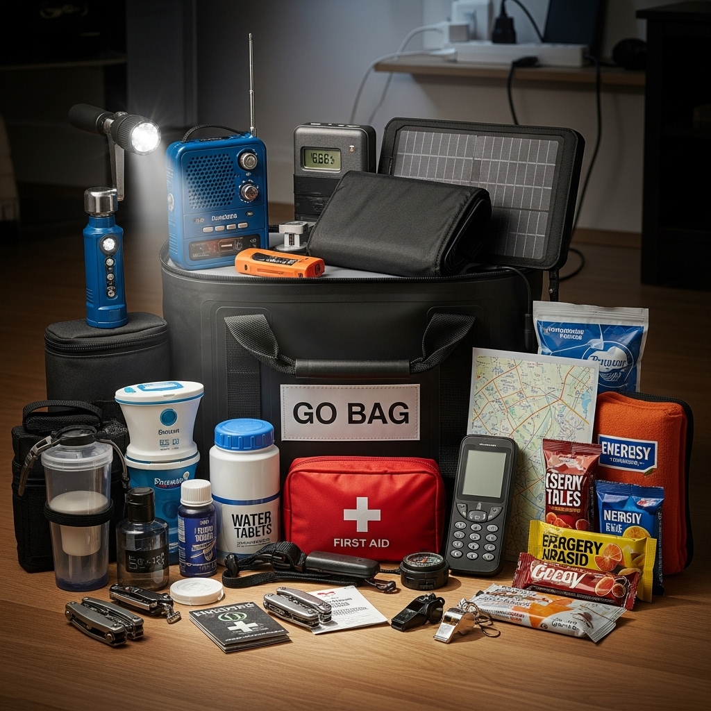 • Bộ vật dụng khẩn cấp (Go-Bag): Chuẩn bị một túi ba lô chứa đủ vật dụng thiết yếu cho ít nhất 72 giờ, sẵn sàng để mang đi nếu cần di tản. Bao gồm nước, thực phẩm khô, thuốc men, quần áo ấm và các món đồ công nghệ đã nêu trên.