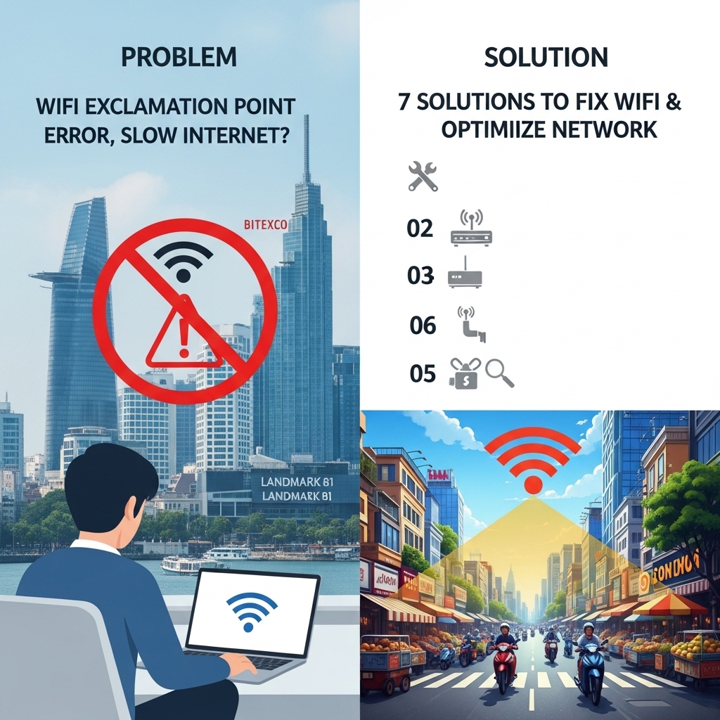 Chúng tôi sẽ cùng bạn đi sâu vào 7 giải pháp hiệu quả nhất để chấm dứt tình trạng WiFi chấm than, internet chậm và mang lại trải nghiệm kết nối tốc độ – ổn định – bảo mật cao.