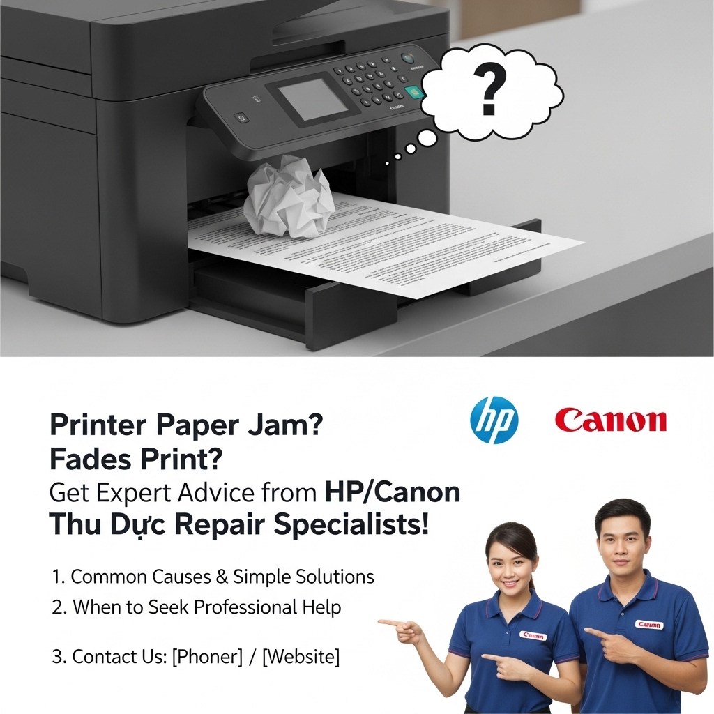 Nếu bạn gặp tình trạng máy in kẹt giấy liên tục mà không rõ nguyên nhân, đặc biệt là với các dòng máy in HP hay Canon phổ biến, hãy để Vi Tính Tâm Thuận Phát giúp bạn. Chúng tôi cung cấp dịch vụ sửa máy in kẹt giấy Thủ Đức và sửa máy in tại nhà Gò Vấp với tốc độ có mặt nhanh chóng, xử lý dứt điểm mọi lỗi. Gọi ngay 0708449538!