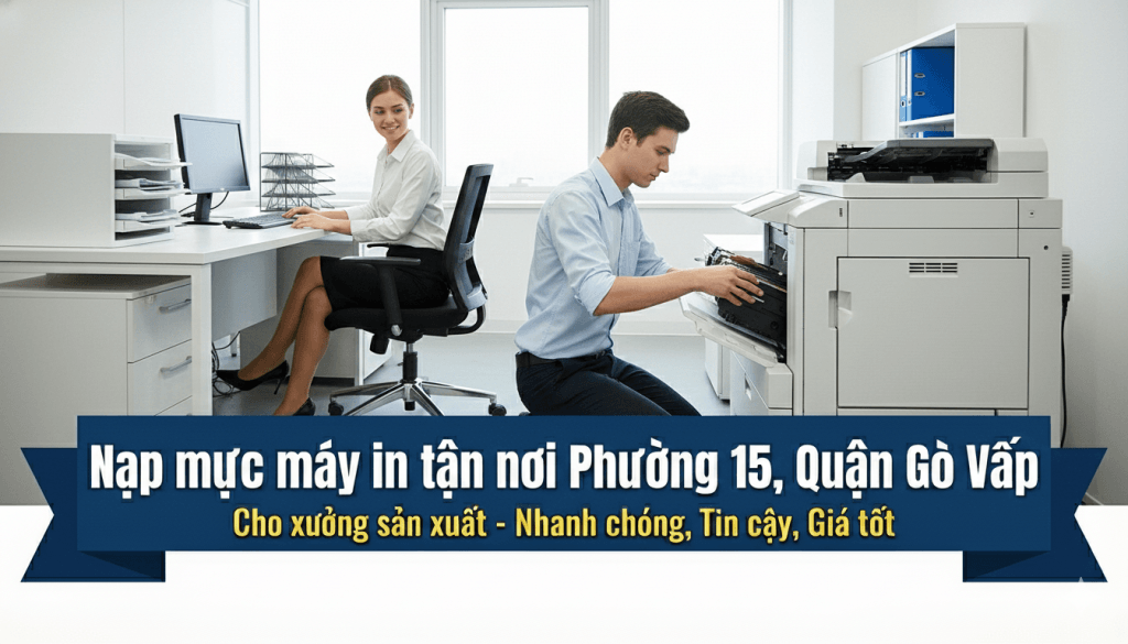 Chúng tôi hiểu rằng thời gian của bạn là vàng bạc, chính vì vậy, dịch vụ tận nơi của chúng tôi được thiết kế để mang lại sự tiện lợi tối đa, giúp bạn tiết kiệm thời gian di chuyển và nhanh chóng đưa công việc trở lại quỹ đạo. Không chỉ phục vụ khu vực Phường 15, Gò Vấp, chúng tôi còn mở rộng dịch vụ khắp các quận huyện tại TP.HCM. Đặc biệt, chúng tôi cam kết chất lượng mực in, linh kiện thay thế và dịch vụ sửa chữa với chính sách bảo hành 1 đổi 1 trong thời gian quy định, mang lại sự an tâm tuyệt đối cho khách hàng.